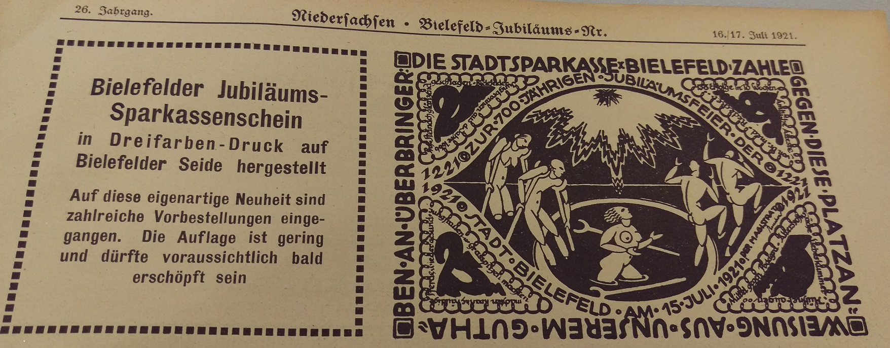 Werbung_Notgeld_1921_2 Autoren Rabea Giersch Volker Ehlebracht Jens Flachmann Christoph Kaleschke Stephan Merkel Rahel Neufeld Natalia Tietz Neueste Beiträge Öffnungs- und Servicezeiten über den Jahreswechsel 2025 / 2026 Online-Banking Business: Änderungen in der Navigation in der Internet-Filiale Wartungsarbeiten an unseren IT-Systemen am 22. und 23. November 2025 Sparschwein-Malwettbewerb 2025: Die Online-Abstimmung beginnt am 13. November! Am 17. November 2025 sind unsere Filialen ab 12:00 Uhr geschlossen Alle Bilder auf den Seiten dieses Blogs sind urheberrechtlich geschützt. Copyright: Sparkasse BielefeldDeutscher SparkassenverlagS-Communication Services GmbHund andere.