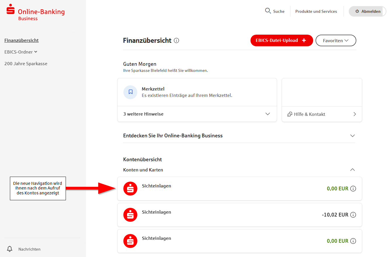 Online-Banking Business: Änderungen in der Navigation in der Internet-Filiale